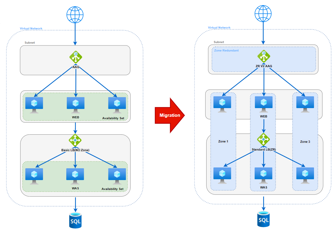 본 솔루션에서는 Zone이 적용되지 않은 간단한 3-tier 구조의 서비스를 가용성 영역으로 마이그레이션 하는 방법을 살펴보겠습니다.