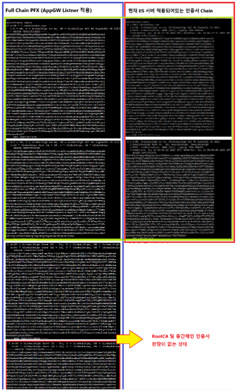 각각 업로드되는 인증서의 실제 내용과 체인 구성 상태가 정상적인지 사전에 반드시 확인해야 함을 시사하는 트러블슈팅 사례로 볼 수 있습니다.