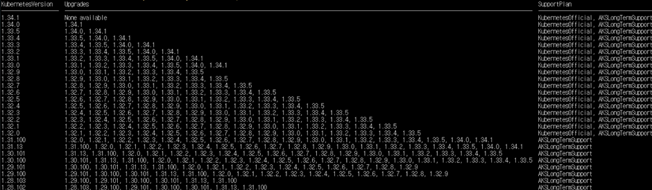 이 경우 Azure CLI를 사용해 리전 내 사용 가능한 aks 버전을 확인 할 수 있습니다.