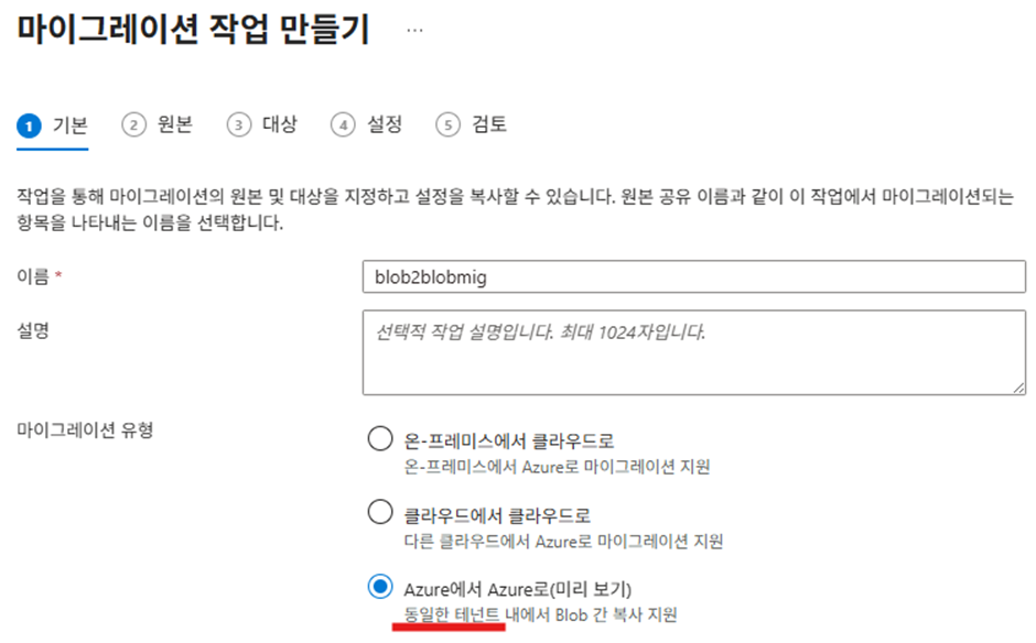 이 문서에서는 Blob to Blob 마이그레이션을 기준으로 가이드 합니다.